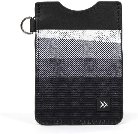 This minimalist wallet is incredibly slim, has a sturdy keychain ring on the top corner, able to hold up to 8 cards, and delivers RFID blocking capabilities. You’ll also appreciate the transparent ID window.